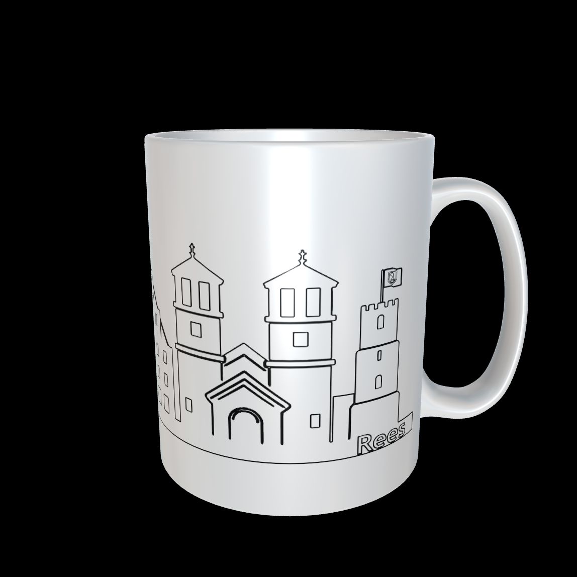 Tasse mit Konturen der Sehenswürdigkeiten.