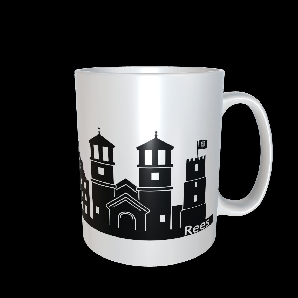 Tasse mit Zeichnung der Sehenswürdigkeiten.